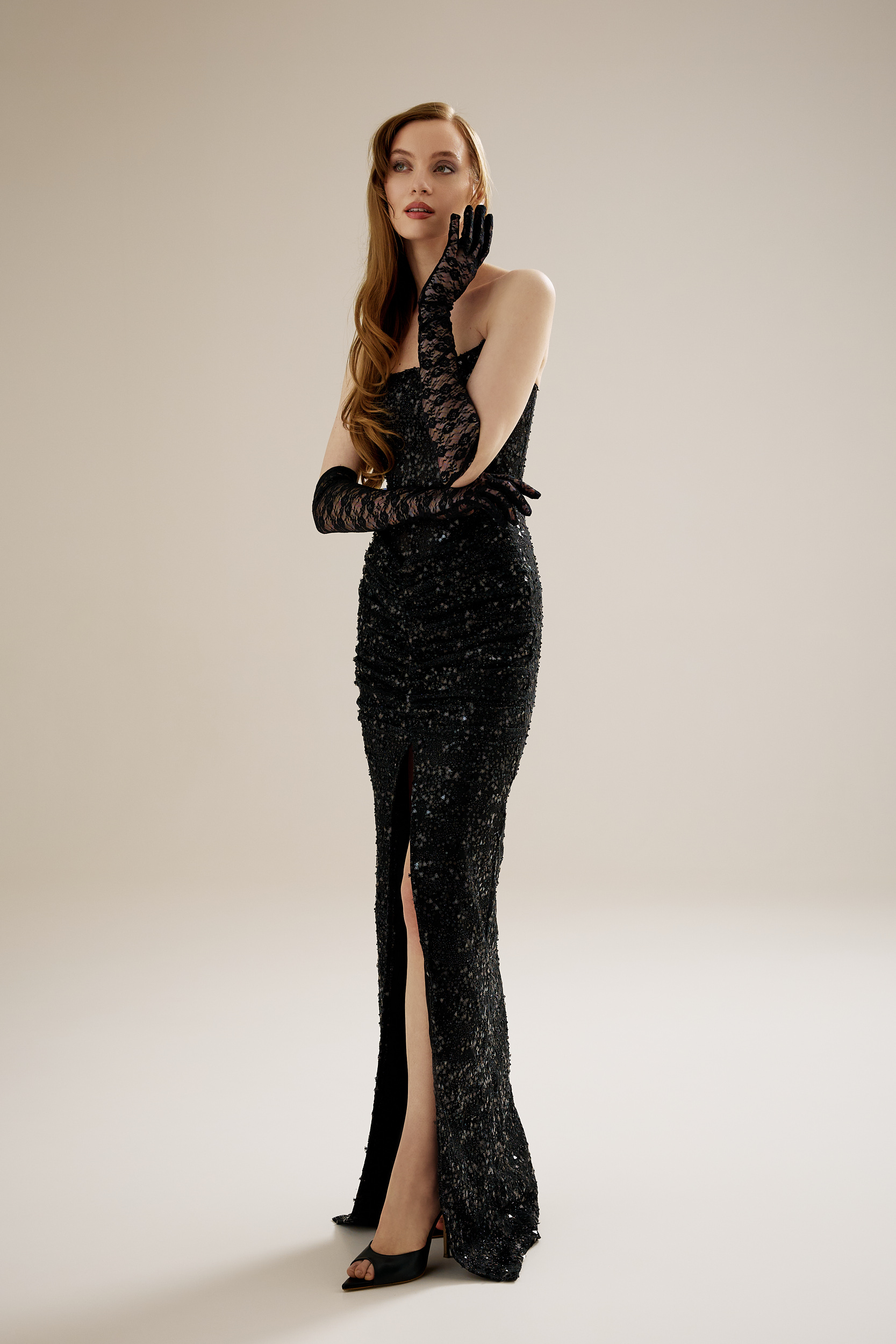 Designul evidențiază silueta printr-o construcție couture potrivita pentru ocazii speciale.